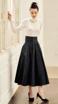 日本製のジャガード生地を贅沢に使用したフレアスカートでございます。