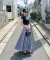 スカート下部に三角マチをたっぷりと入れることでヒップ周りはボリュームを抑え、下に行くほど増すフレア感により歩くだけで美しいボリュームをお楽しみいただけるシルエットに仕上げました。