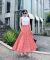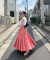 バックレースアップギンガムフレアスカート