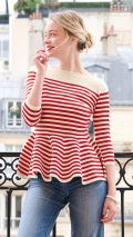 日本製 無縫製ボーダーペプラムニット