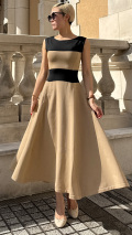ウエスト位置を通常よりも高めに設置することによって、気になる下腹部分・ヒップを自然なフレアラインがカバーしてくれます。