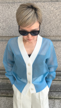 夏らしい配色デザインでシンプルになりすぎない、大人のためのシアーカーディガンに仕上がりました。