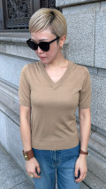 程よく身体に沿う美しいシルエットとデコルテをすっきりと見せるVネックラインが、シンプルでありながら女性らしい品格を演出いたします。