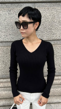 バックにあしらわれたさりげない配色スリットが特徴のリブニットトップスでございます。
