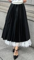 合皮と繊細なレースを組み合わせたプリーツスカートでございます。