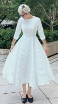 千鳥柄の膨れジャガード生地を使用したワンピースでございます。
