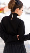 バックパールボタンニット