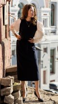 ブラウスの袖元がボリュームたっぷりなので、レトロでモードな雰囲気をお楽しみいただけます。 ニット部分はスッキリ落ち感があり大人な印象。