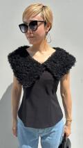 大きな襟にチュールを敷き詰めたラグジュアリーなトップスでございます。