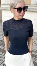 ステンドグラスのような美しい透け感のニットトップスでございます。