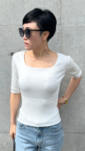 スクエアネック5分袖ニット