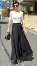 結び方次第で異なる表情をお楽しみいただける、オンオフ共に使い勝手のよいスカートに仕上がりました。