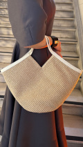 美しいフォルムに華奢なハンドルのコントラストが印象的なサマーバッグでございます。