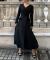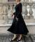 様々なシーンでお召しいただける上品なフレアシルエットにポイント使いされたベロア生地がシックな印象に。