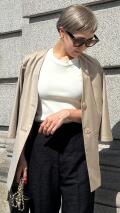 キャンディのような涼しげなべっ甲ボタンがノーカラージャケットスタイルのポイントとなってくれます。