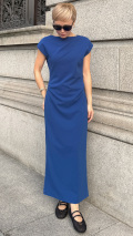 しなやかなドレープが縦のラインを美しく描く、カットソー素材のワンピースでございます。