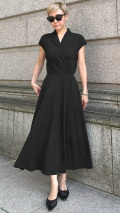 着心地よく、しなやかで落ち感のある生地が身体のラインを美しく整えます。