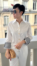カフス部分をワイドにデザインしボーダー柄をあしらうことで、シンプルなシャツのポイントに。