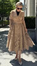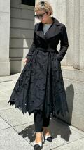 刺繍が特徴的なラグジュアリーなトレンチコートでございます。
