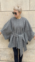 肩部分にはタックを入れ、ポンチョとは思えない立体感を表現いたしました。