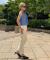 生地はデニム風の見た目ながら滑らかでさりげないツヤがあり、カジュアルになりすぎない印象でお楽しみいただけます。
